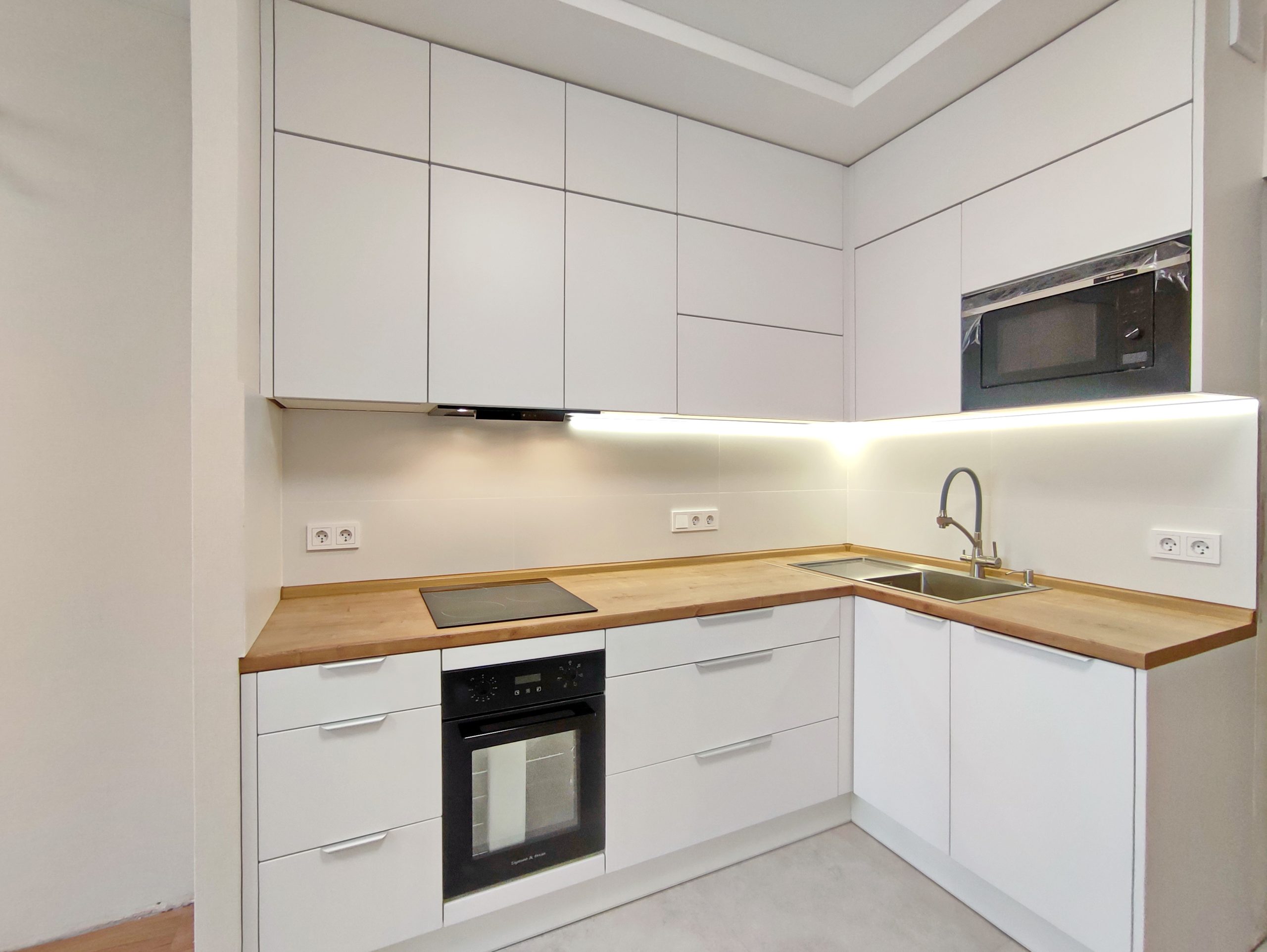 Угловые кухни, линейные или прямые, п-образные кухни, до потолка, с барной стойкой и с островом – все это есть в салоне «Пан Кухарскi» в Минске.
